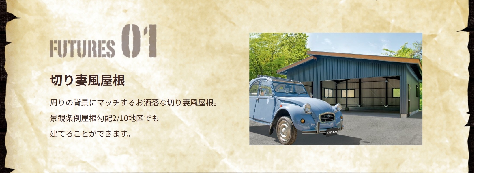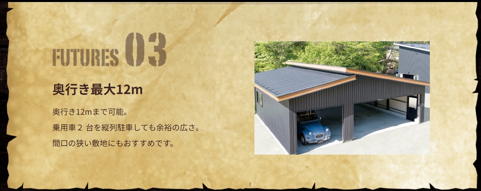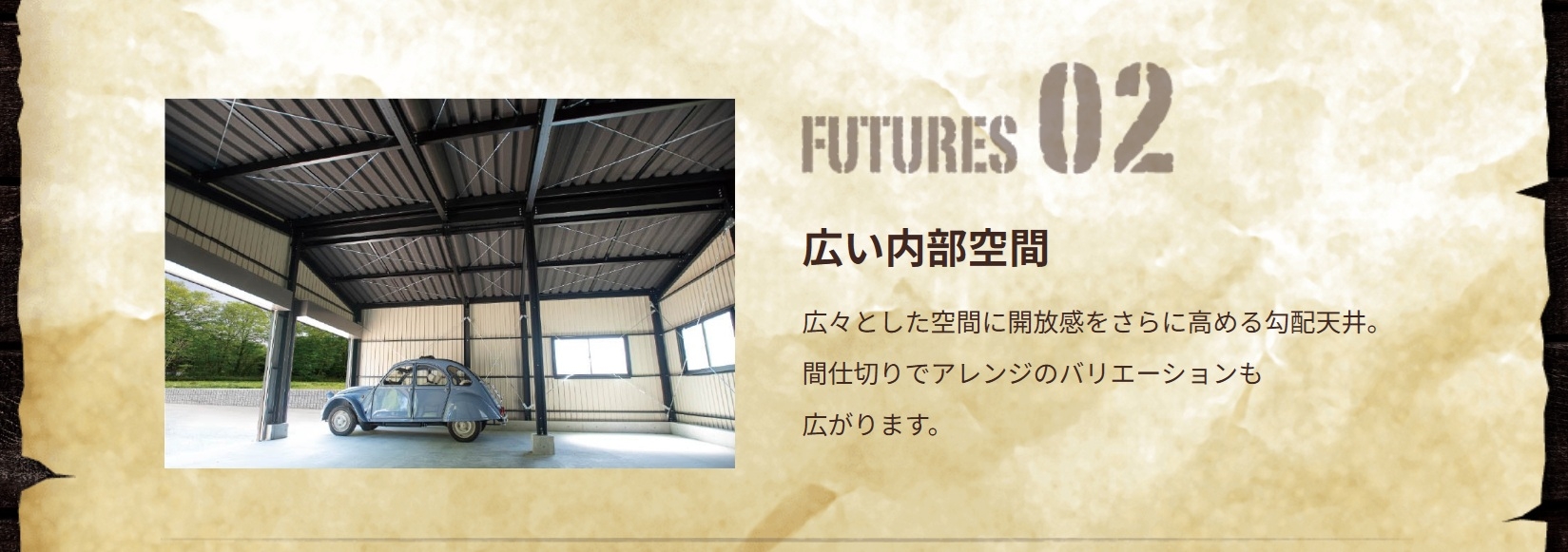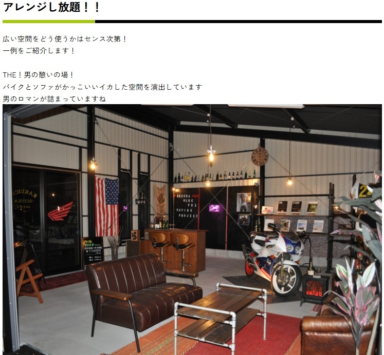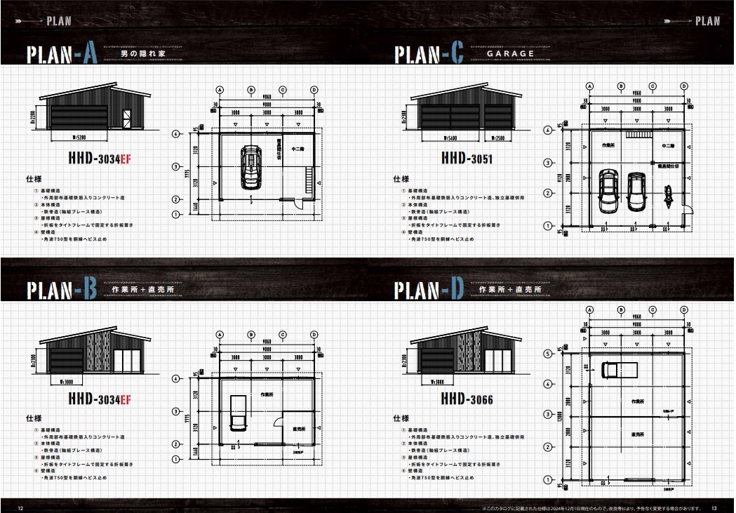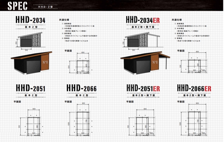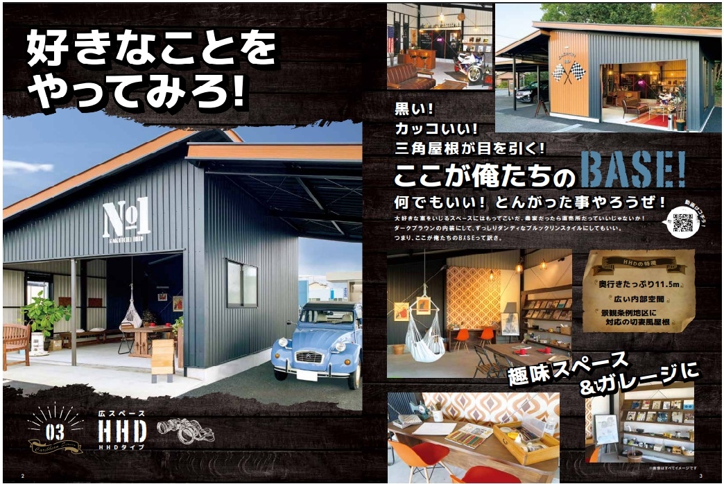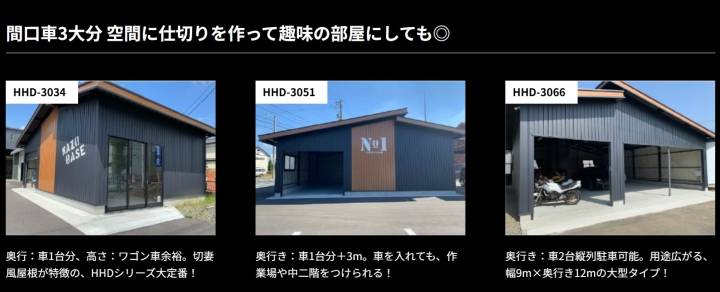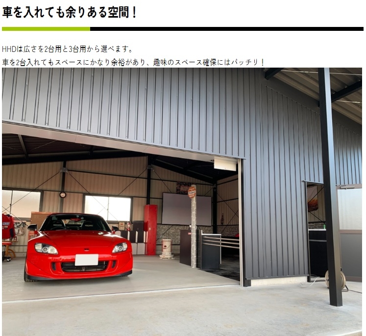 HOME 製品紹介 【切妻おしゃれガレージ】HHD HHDは中小規模の倉庫・物置として最適な製品です。コンパクトながら十分な収納スペースを確保できます。軽量で組み立てやすく、農業用途や一般家庭の物置として広く利用されています。 黒い!カッコいい!三角屋根が目を引く!ここが俺たちの「BASE」! 趣味スペース&ガレージに 仲間と語り合う! 結局みんながここに集まってくる。 新しいガレージライフが始まる。 オプションを有効活用 【SPEC】 HHDタイプ HHD-2型 HHD-3型 建具PLAN ガレージ 隠れ家 作業所+直売所 製品紹介TOP画面へ 製品紹介TOP 施工例をご覧ください 施工事例 ラインナップへ 【ガレージ・倉庫】 広スペースハウス 【ガレージ・倉庫】広スペースハウス(L) 【趣味空間&ガレージ】MINI-HHD 【鉄骨カーポート】 キャノポート 高級カーポート】 B - CANO 【夢をつめこめ】C A R I B B E A N - T 【自由にカスタム】 A-SITE 【HOME】